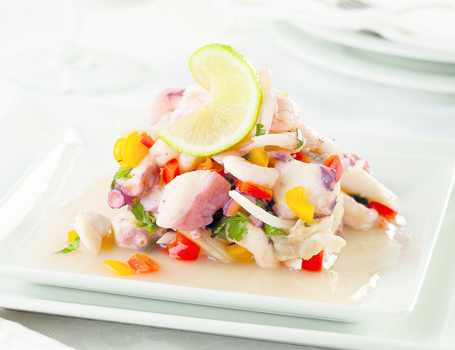 Ecuador ist ein vergleichsweise kleines Land in Südamerika. Es liegt im Nordwesten zwischen Kolumbien und Peru. Die Exportschlager, außer Schnittrosen, sind Bananen, Kaffee, Kakao und Shrimps. Um gleich mal an der Küste zu bleiben, Ceviche, das ist dort Nationalgericht und Heilmittel zugleich. Egal ob als Katermittel oder für die gute Laune, dieses Gericht schmeckt und heilt. Auch wenn es in Ecuador bestimmt immer ein wenig besser schmecken wird, versuchen Sie es ruhig selbst einmal. Die Zubereitung ist denkbar einfach. Für Ceviche werden rohe Fischstücke (und Meeresfrüchte) in Zitronensaft mariniert. Dann kommen rote Zwiebeln und Rocoto (paprikaähnliche Chili Sorte) hinein. Dazu gibt es gegrillte Maiskolben, gesalzenes Popcorn und Kochbananenchips. Hört sich vielleicht seltsam an, schmeckt aber überraschend gut.